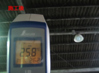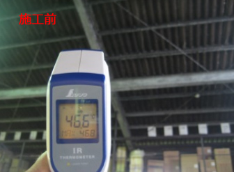 下の写真は施工前と施工後の同じ場所の温度を測ったもの。施工前は46.6℃、施工後は25.8℃と、なんと20℃もの差が出ました。